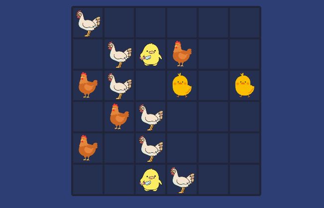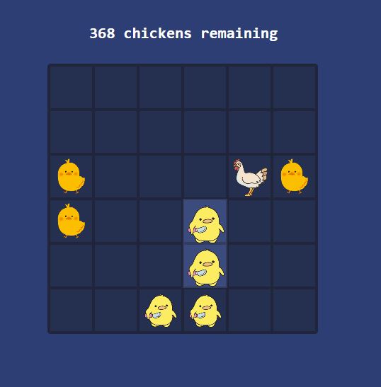 368 Chickens is a strategic browser puzzle game where your goal is simple but surprisingly difficult: save all 368 chickens by arranging them into rows of three or more.